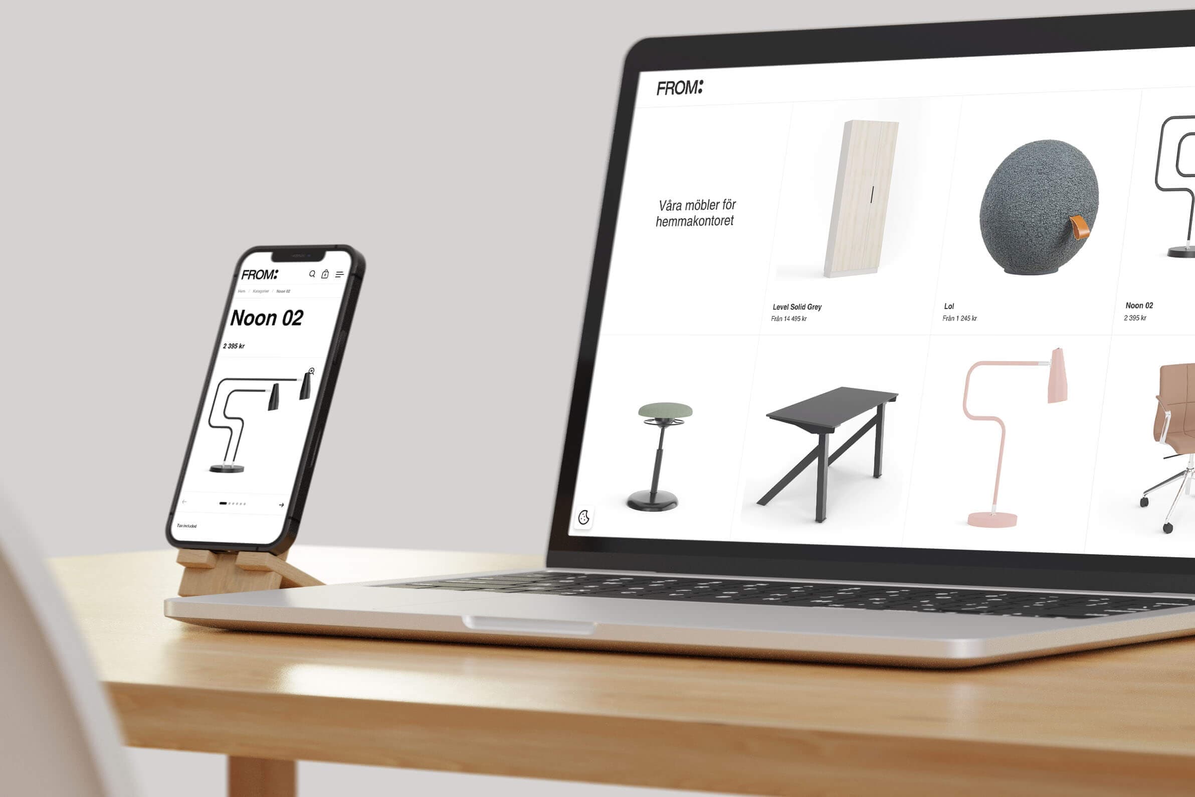 From är ett svenskt möbelföretag som föddes ur idén om att den som arbetar hemma inte ska behöva välja mellan ergonomi och estetik. Vi utvecklade varumärket för vår kund Götessons Design Group, gjorde 3D-material av produkter som fortfarande bara var prototyper, och samlade allting på en Shopify-sida.