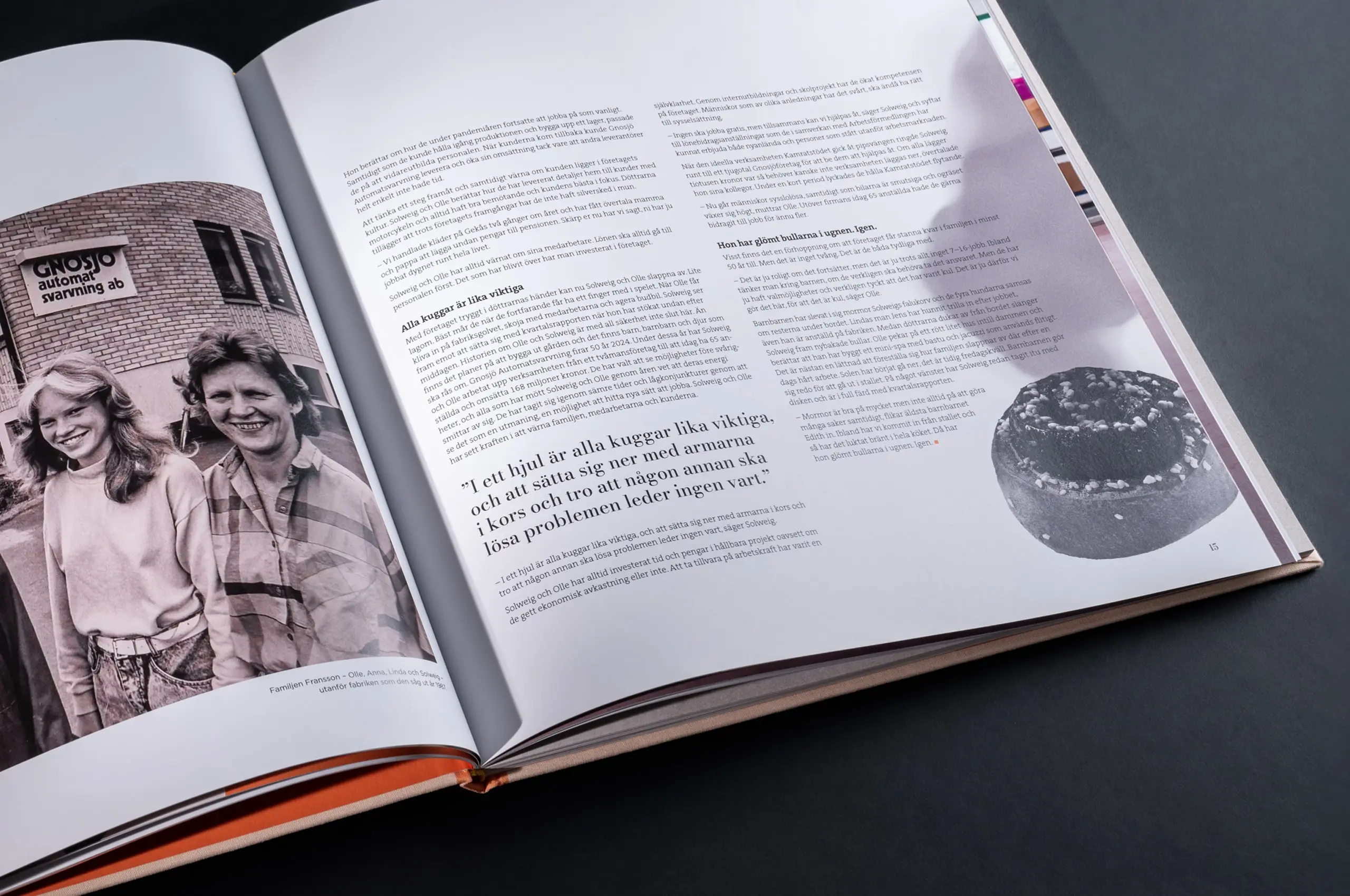 År 1974 grundar Solweig och Olle Fransson Gnosjö Automatsvarvning. Femtio framgångsrika år senare drivs bolaget av döttrarna Anna och Linda. Som en hommage till föräldrarna och för att fira företaget ville man ha en jubileumsbok. Vi fick uppdraget.