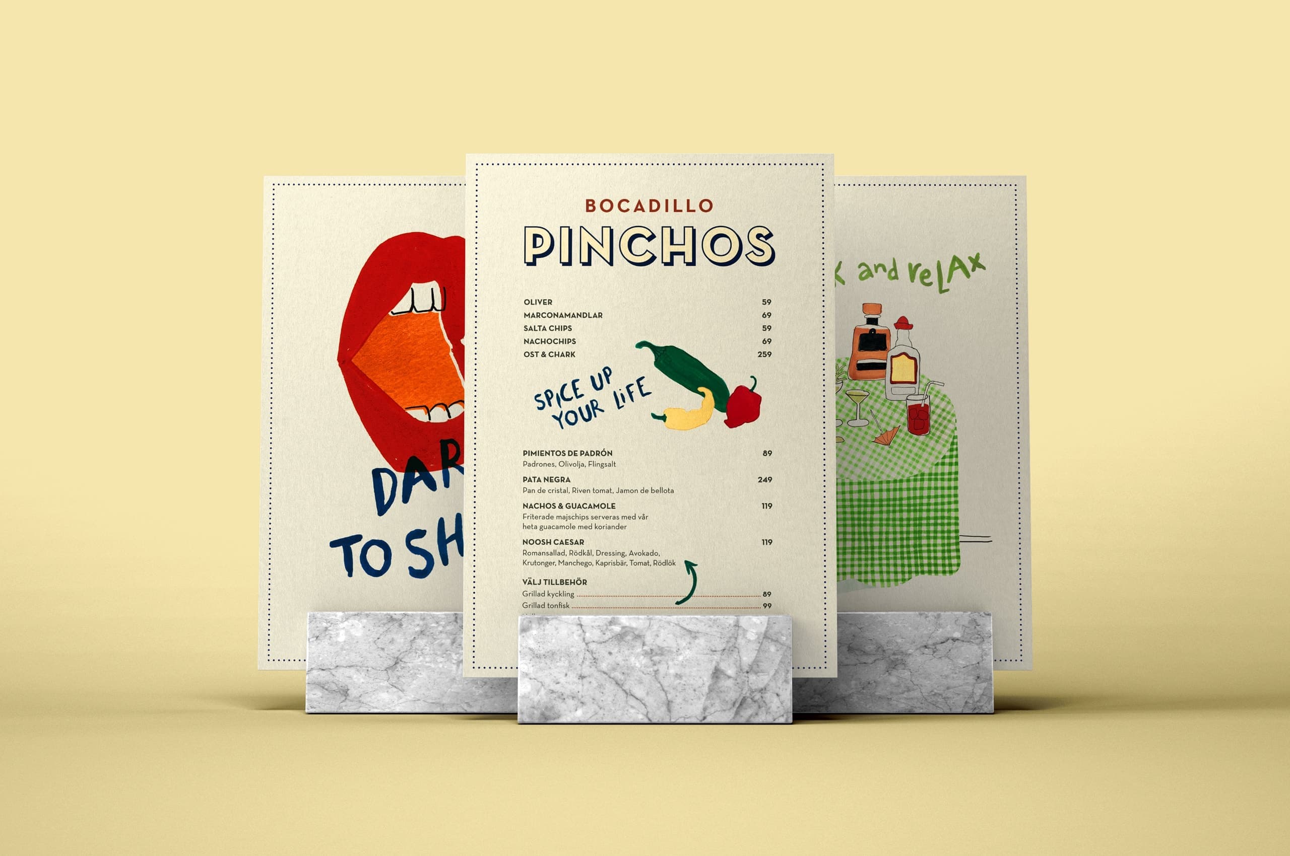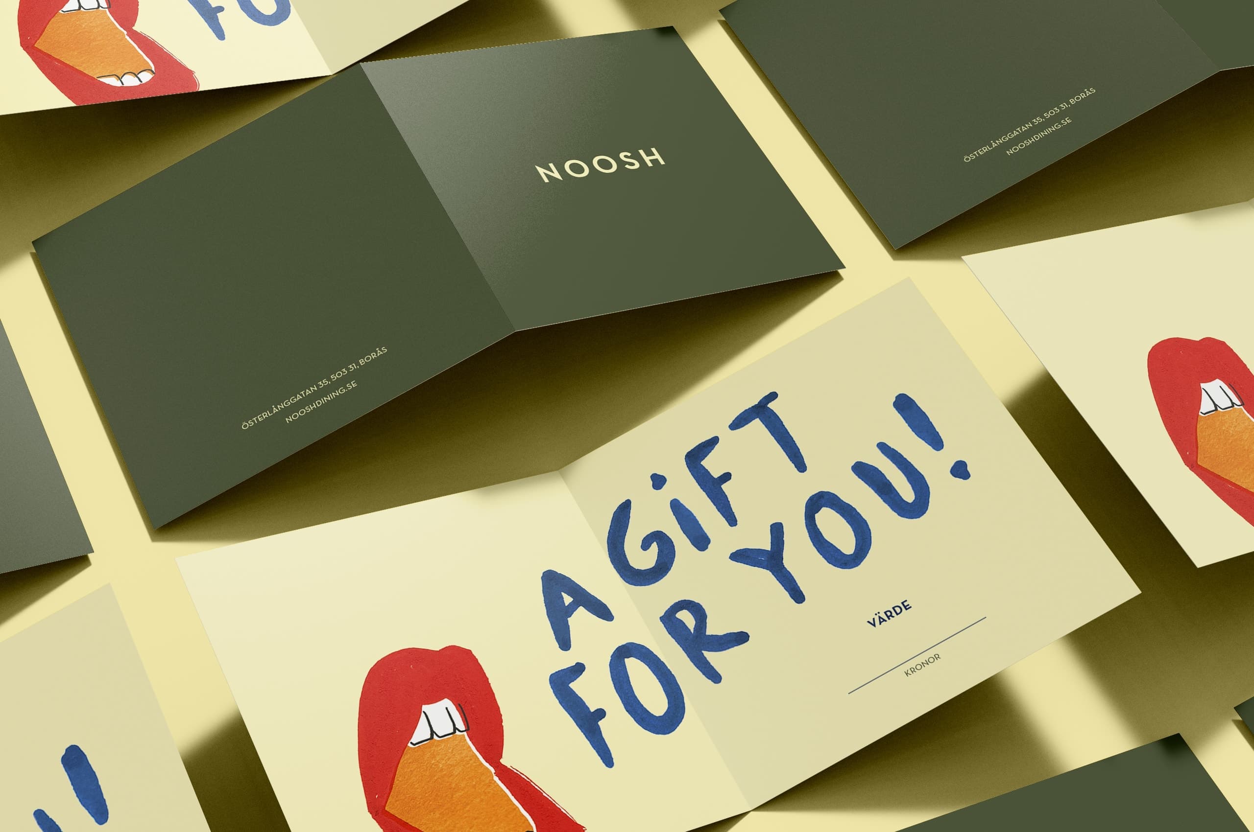 Tillsammans med illustratören Madelen Lindgren utvecklade Beyond en grafisk profil och design som speglar restaurangens själ. En ny logotyp, meny och flera illustrationer har skapat en visuell identitet som passar perfekt till Noosh’s mantra: Less ego – more amigo.