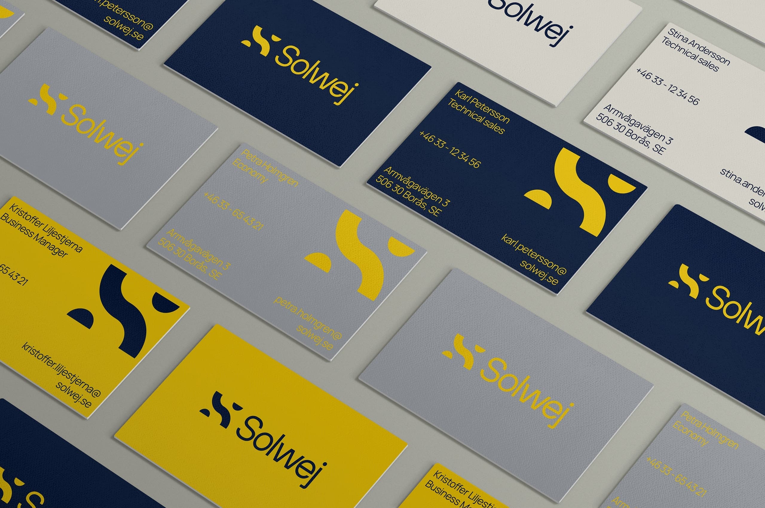 Med namnet Solwej på plats växte logotyp och grafisk profil fram. Fokus hos vår grafiska designer låg på ett uttryck med en känsla av stabilitet, energi, miljö och grunden till vår existens – solen. För att snabbt komma ut på marknaden designade och byggde våra UX-designers och utvecklare sedan en enkel sajt, till vilken vi även skrev texterna.