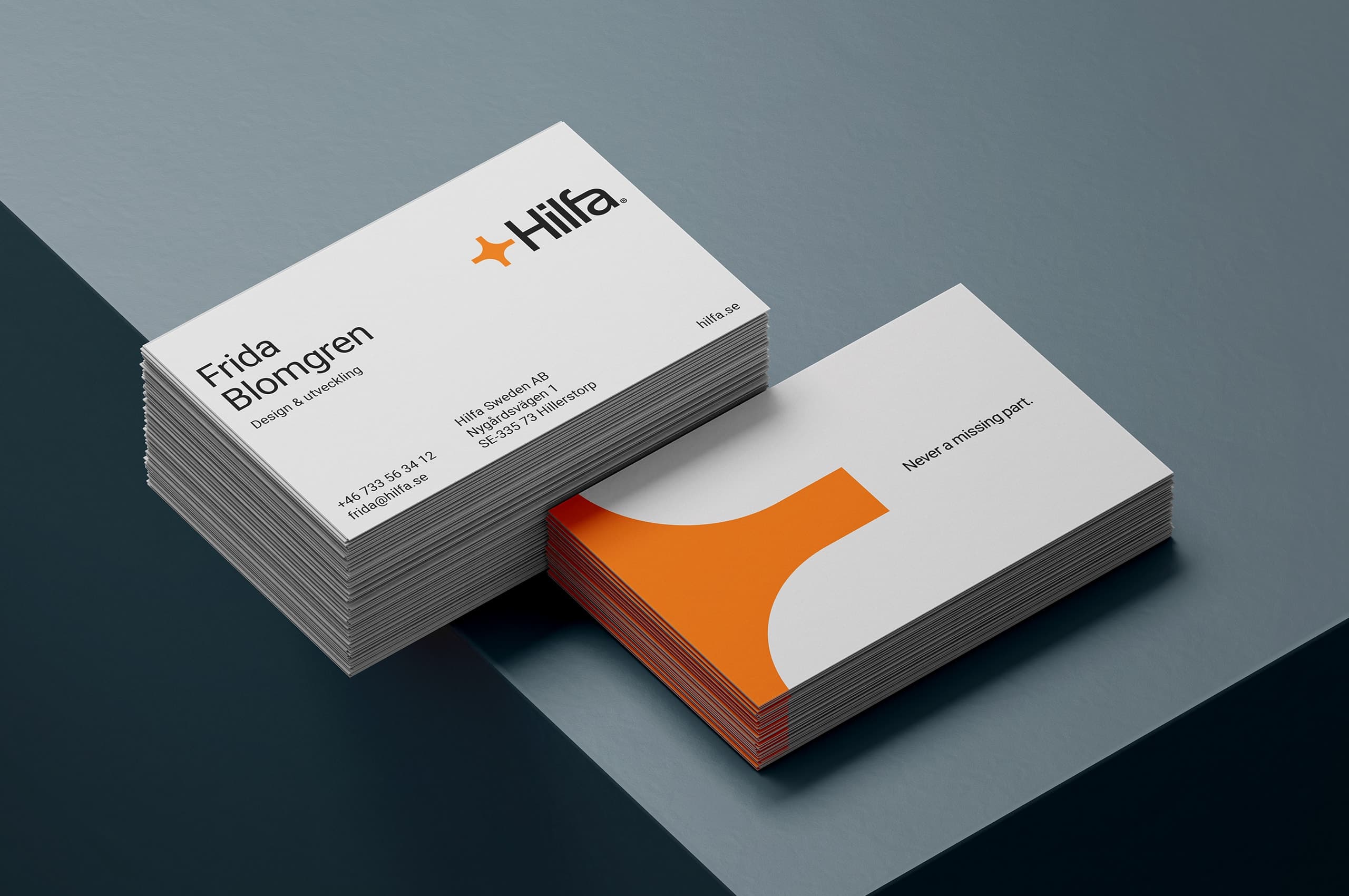 Med en verksamhet präglad av ett brett sortiment hämtade vi logotypens symbol därifrån. Det stiliserade korsvredet placerar Hilfa mitt bland de viktiga detaljerna som både deras dna och erbjudande vilar på. Och vad har man för vision när ens kunders tillverkning är helt beroende av de komponenter man levererar?