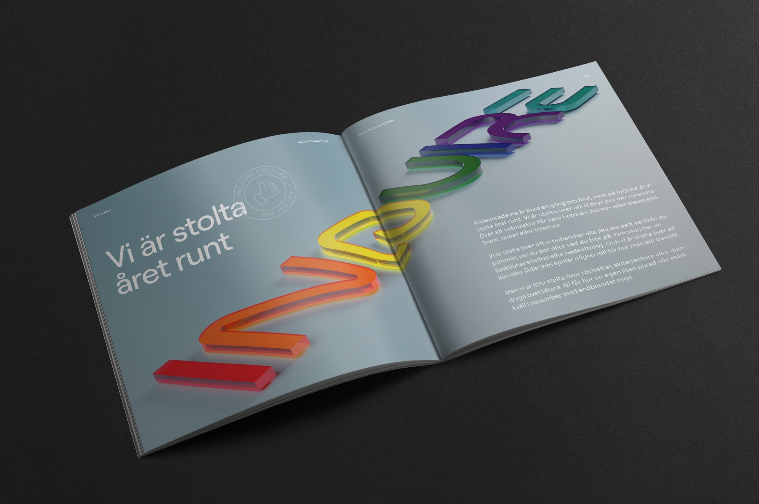 I ett snabbt växande bolag som InQuire är det också viktigt att hålla ihop varumärket både internt och externt med drivande kärnvärden och ett tydligt varumärkeslöfte till marknaden – Game-changing Logistics. Allt samlat i en snabbläst brand book som också sammanfattar Big yes yes och Big no no i InQuires företagskultur.